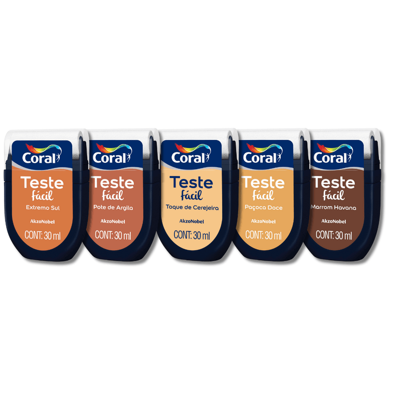 Coral Teste Fácil é uma tinta acrílica fosca com 240 opções de cores para testar antes de pintar e acertar na cor de suas paredes de uma maneira fácil, simples, com fidelidade ao tom da tinta final, com secagem rápida e sem bagunça.