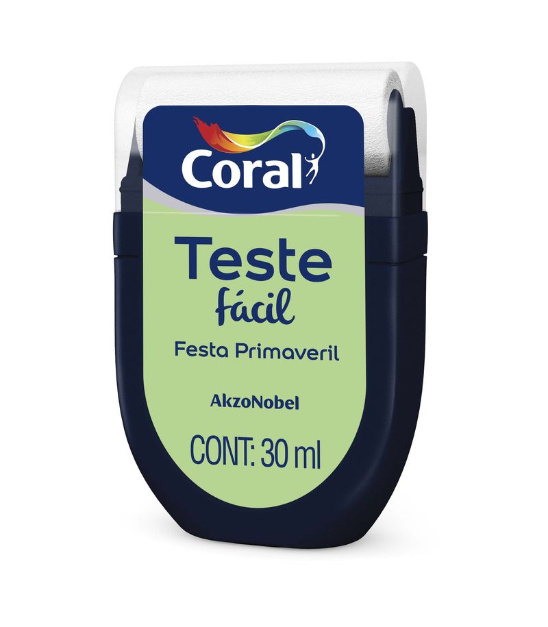 Coral Teste Fácil é uma tinta acrílica fosca com 240 opções de cores para testar antes de pintar e acertar na cor de suas paredes de uma maneira fácil, simples, com fidelidade ao tom da tinta final, com secagem rápida e sem bagunça. É fácil, prático e rápido: a embalagem já vem com um minirrolinho embutido - basta abrir, agitar e testar.